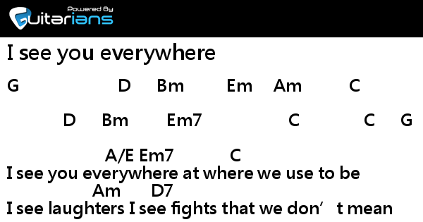 Eric chou - I see you everywhere 結他譜 Chord譜 吉他譜 | Guitarians.com